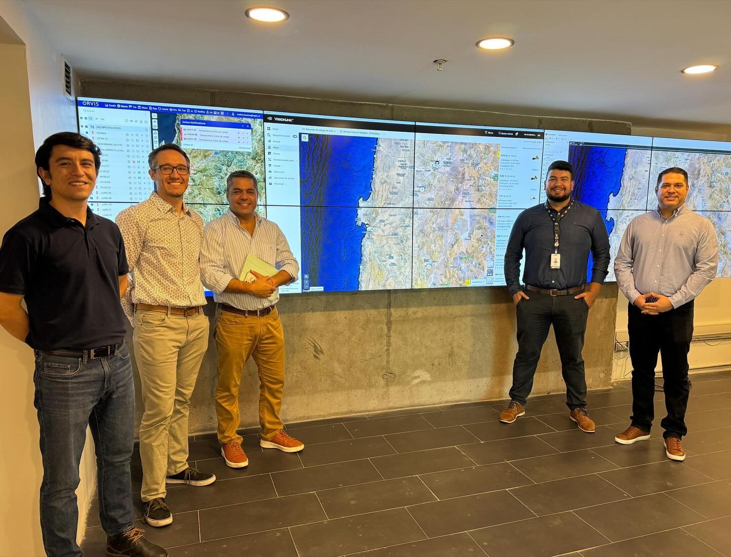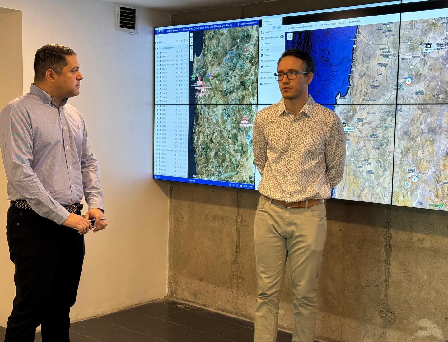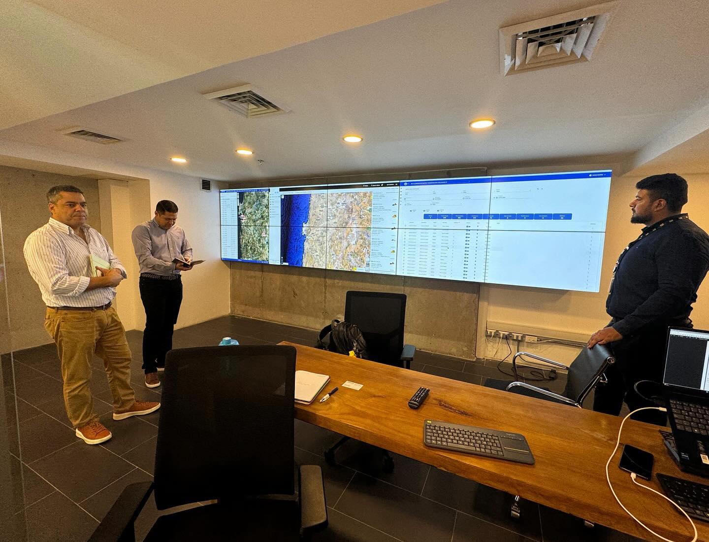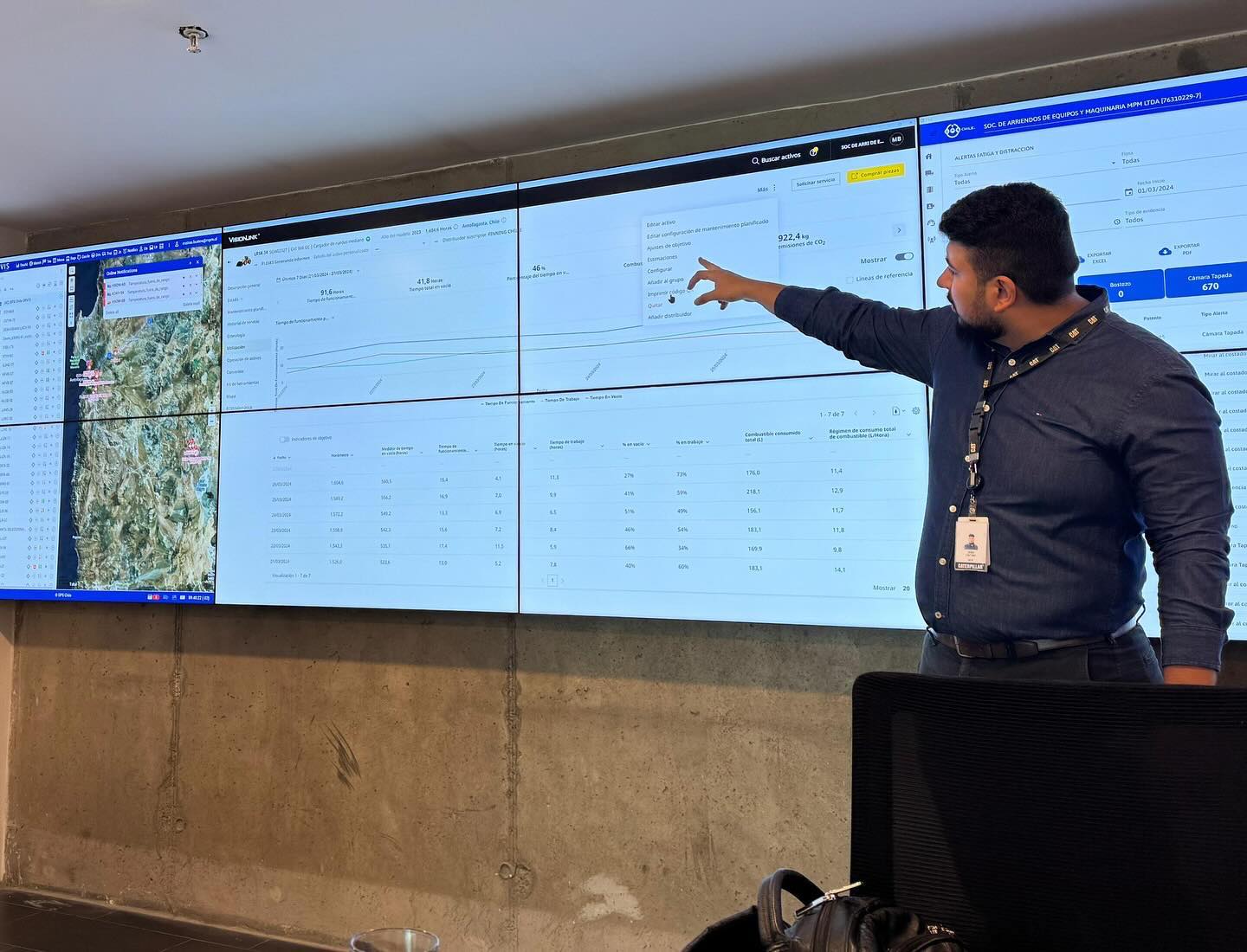 Rodrigo Domingo, Gerente Comercial Cuentas Estratégicas- Finning Sudamérica; Pablo Díaz, Techinical Representative & SAS, y Denis Caetano, Technology Sales Rep- Caterpillar Inc, a quienes presentamos nuestra recién puesta en marcha, Sala de Torre de Control: Una herramienta estratégica que promete revolucionar la forma en la que operamos, ya que no solo nos permitirá supervisar con precisión cada quipo: Su ubicación, operatividad, kilometraje, y horómetros; sino que también agregará valor a nuestros clientes, al optimizar cada aspecto de utilización, de cada una de nuestras maquinarias en su operación.