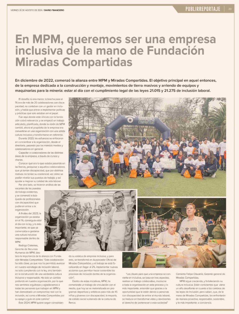Este 2024 MPM quiere seguir consolidando su estatus de empresa inclusiva, y para esto, se transformó en Auspiciador Oficial de Miradas Compartidas, y el trabajo se está focalizando en llegar al 2%, implementar nuevas acciones que permitan hacer sostenible los procesos de inclusión dentro de la organización.