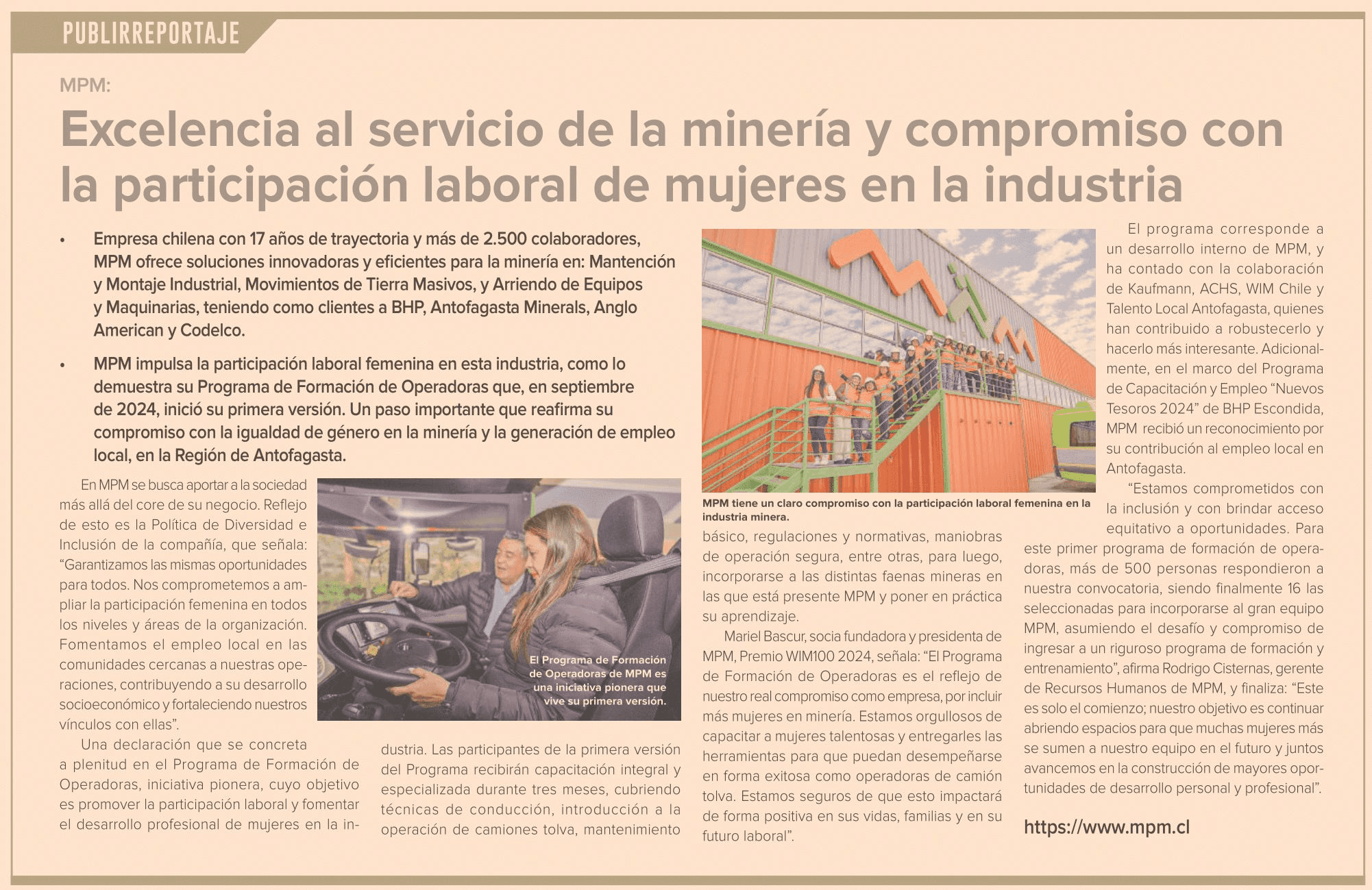 MPM: Excelencia al servicio de la minería y compromiso con la participación laboral de mujeres en la industria