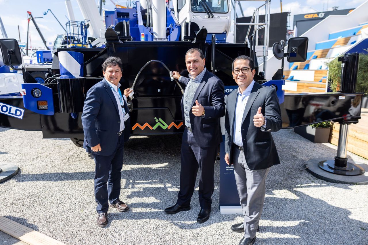 En la reciente versión de Bauma 2025 en Alemania, nuestros ejecutivos recibieron oficialmente de manos de Koichi Tadano, presidente de la empresa japonesa Tadano, nuestra primera grúa 100% eléctrica Tadano eGR-1000XLL-1. Esta adquisición marca un hito para MPM, ya que somos la primera compañía en incorporar este tipo de maquinaria en la industria minera de la región.