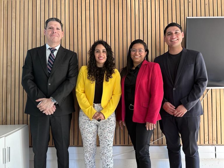 Rodrigo Cisternas, Gerente de Recursos Humanos de MPM; Valeria Farías, Directora de Vinculación con el Medio y Comunicaciones de la Facultad de Ingeniería y Ciencias UAI; Sandra Rojas, Jefa de Prácticas y Docencia de la Facultad de Ingeniería y Ciencias UAI; Ignacio Gallardo, Analista de Recursos Humanos y Coordinador del Programa de Pasantías MPM.