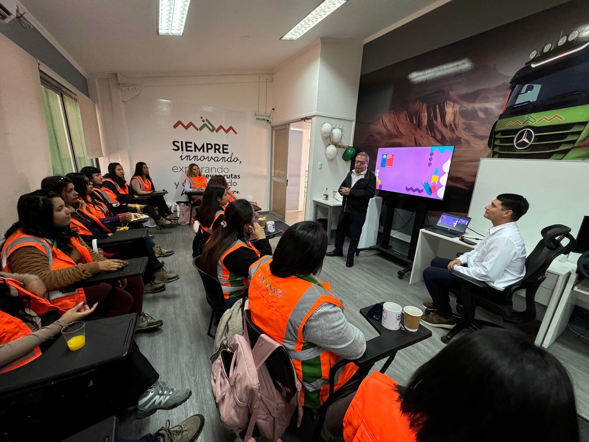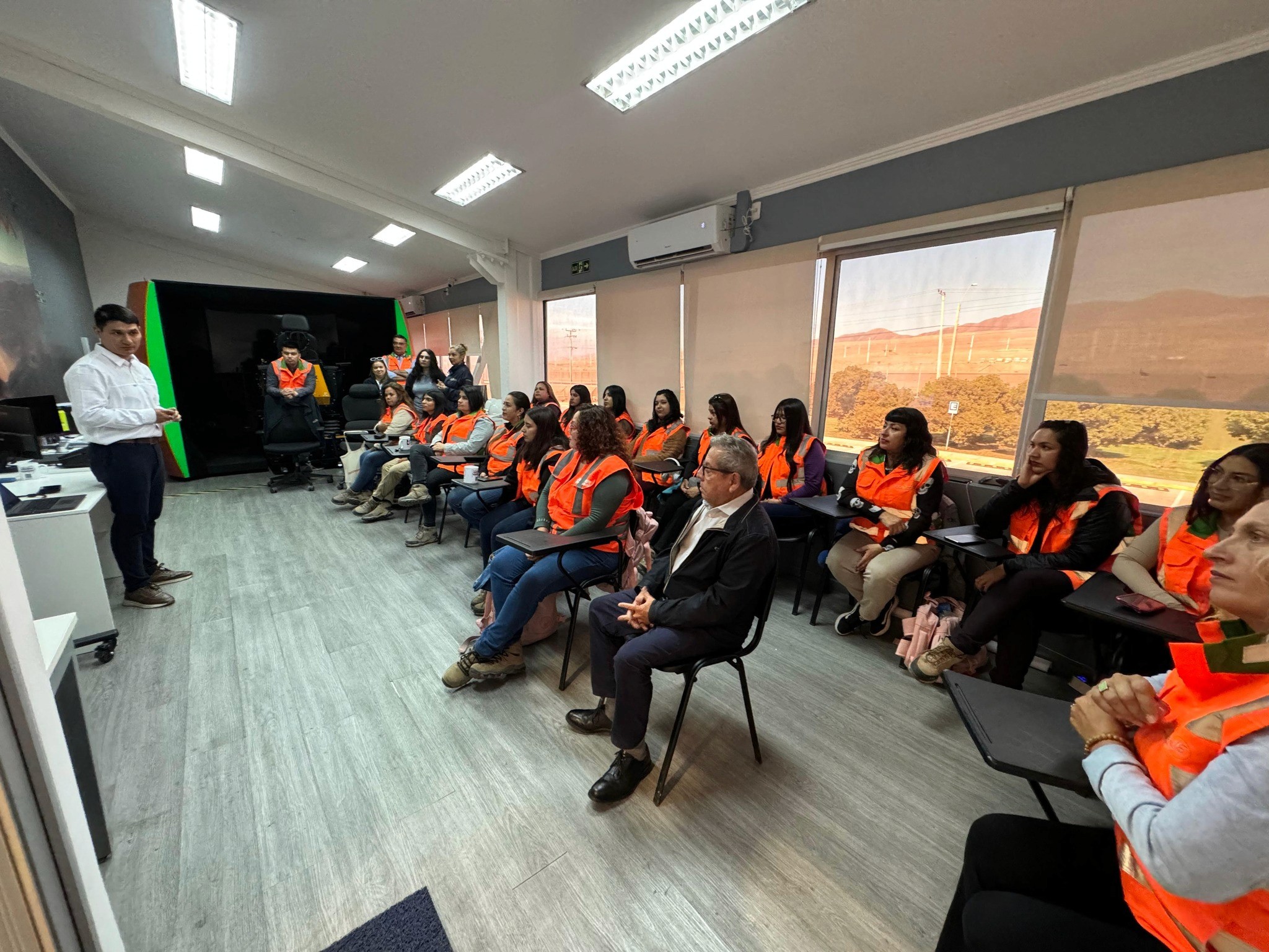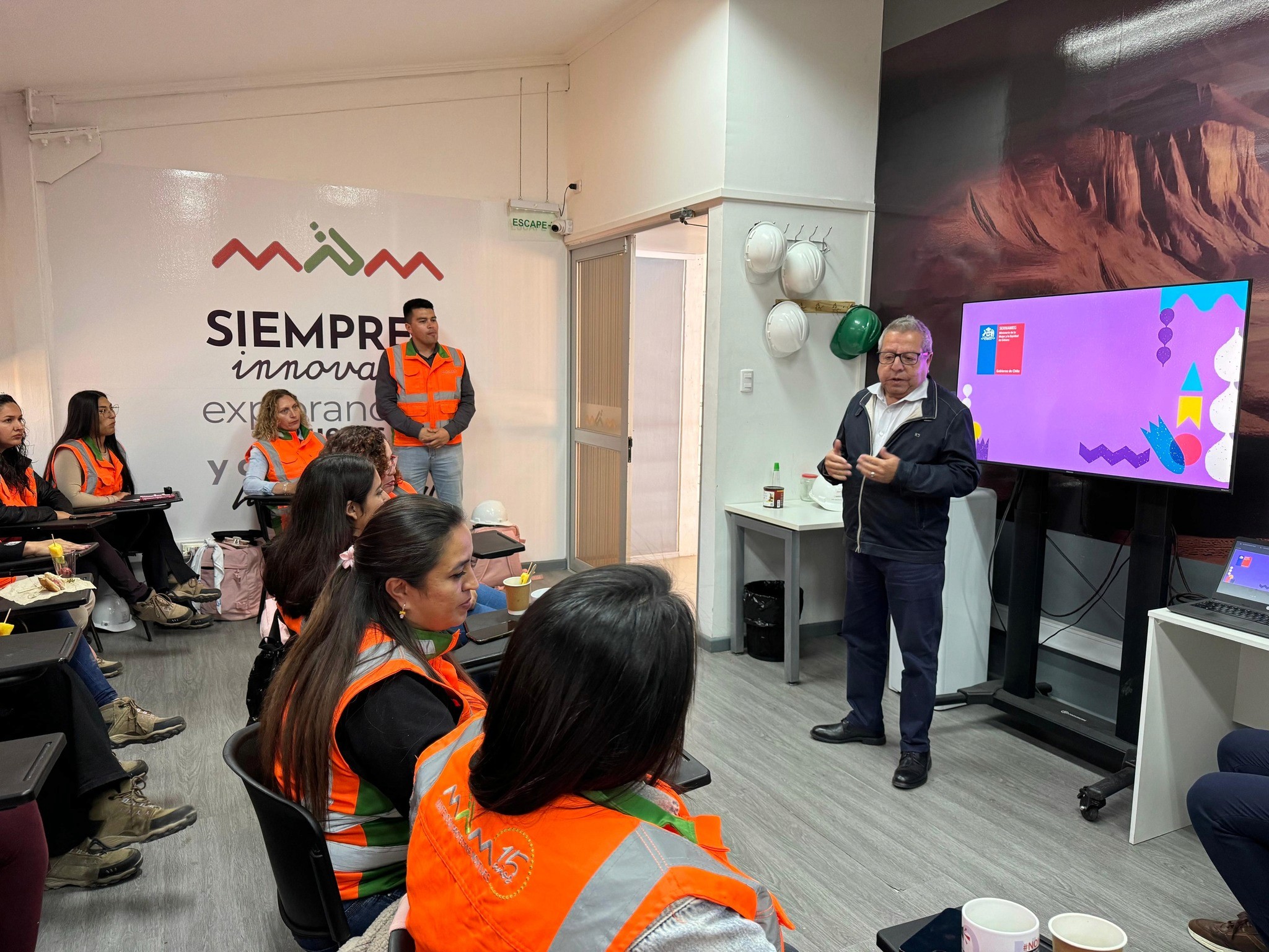 Las 16 mujeres que completaron con éxito su capacitación como operadoras de camión tolva y están listas para unirse a nuestras faenas, recibieron una charla especial sobre Ambientes Laborales Saludables Libres de Violencia, impartida por Carlos Riveros Mena, Encargado Regional del Programa de Buenas Prácticas Laborales con Equidad de Género del Servicio Nacional de la Mujer y la Equidad de Género, SernamEG Antofagasta.